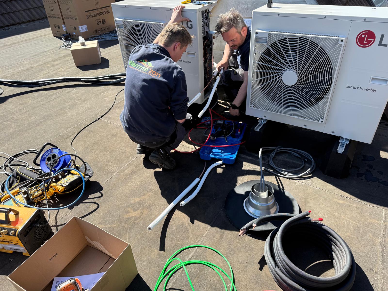 Koelleidingen en condensafvoer netjes wegwerken.